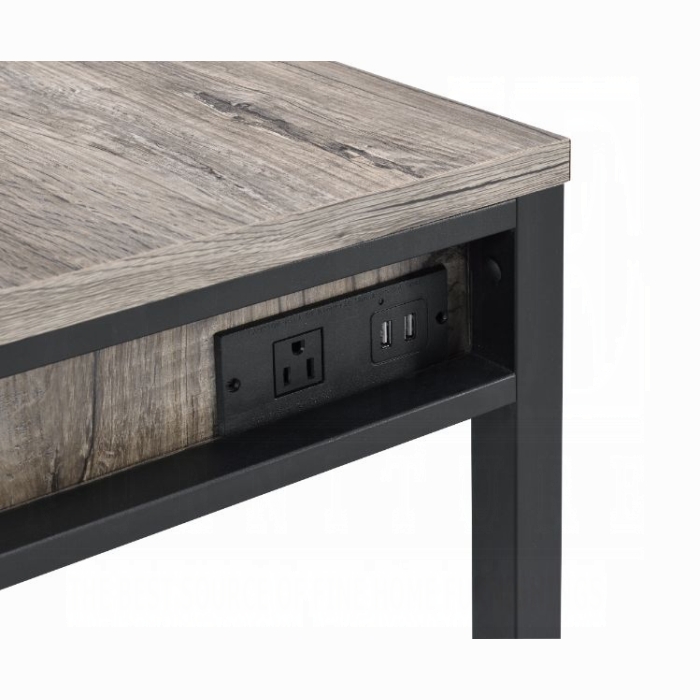 Explore industrial chic and rustic allure in this Writing Desk. It has a ladder-style metal base with clean lines that work well in any contemporary setting. The light weathered oak finish on the tabletop showcases a beautiful wooden texture. There are two storage drawers under desk top for easy storage. Fantastic functional designs like built-in outlets and USB charging docks keep small electric equipment like table lamp, laptop, and cell phone within reach.