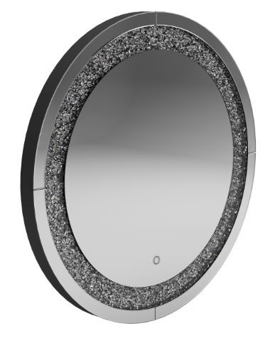 Display a contemporary aesthetic with this round wall mirror. The circular shape is less traditional, reminiscent of a porthole window. A silver frame encircles the mirror with a textured shimmer. Mount this contemporary mirror in a smaller space to instantly visually expand the room. Would also work well as a vanity mirror in a contemporary bathroom design.