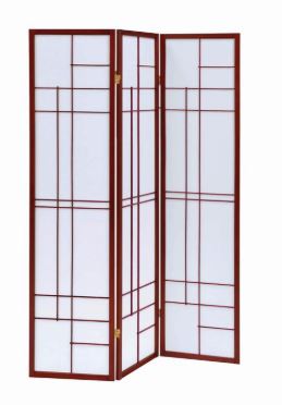 Explore a different look with this three-panel screen. Linear design accents join to create an eye-catching presence. Folded panels provide a privacy measure or a room divider. Brownish red finish frames and trim add a warm touch. Enjoy an enticing optical illusion and a classic decor staple.