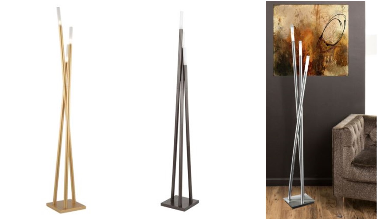 Cylindrical frosted sconces create a soft glow, accenting the modern design of the tubular chrome arms on these futuristic lamps. If you like contemporary but want to keep it subtle, this style the perfect choices. Table lamp is available. Uses 40 watt halogen bulbs.