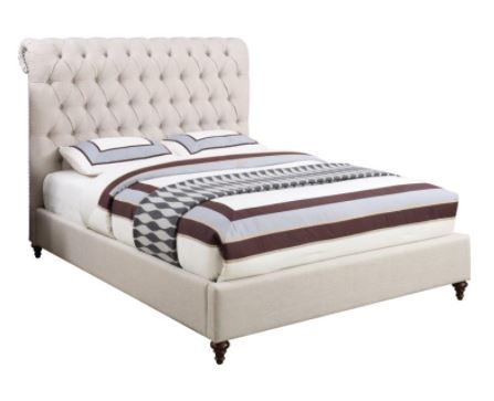 You'll love beginning and ending each day in this beautifully upholstered queen bed. The bed is draped in a beige fabric that features diamond button tufting and individual nailhead trim, giving the piece some style and personality. Furthermore, details like the rolled headboard design and cappuccino finished turned legs provide elegant details that bring this bed above and beyond the competition.