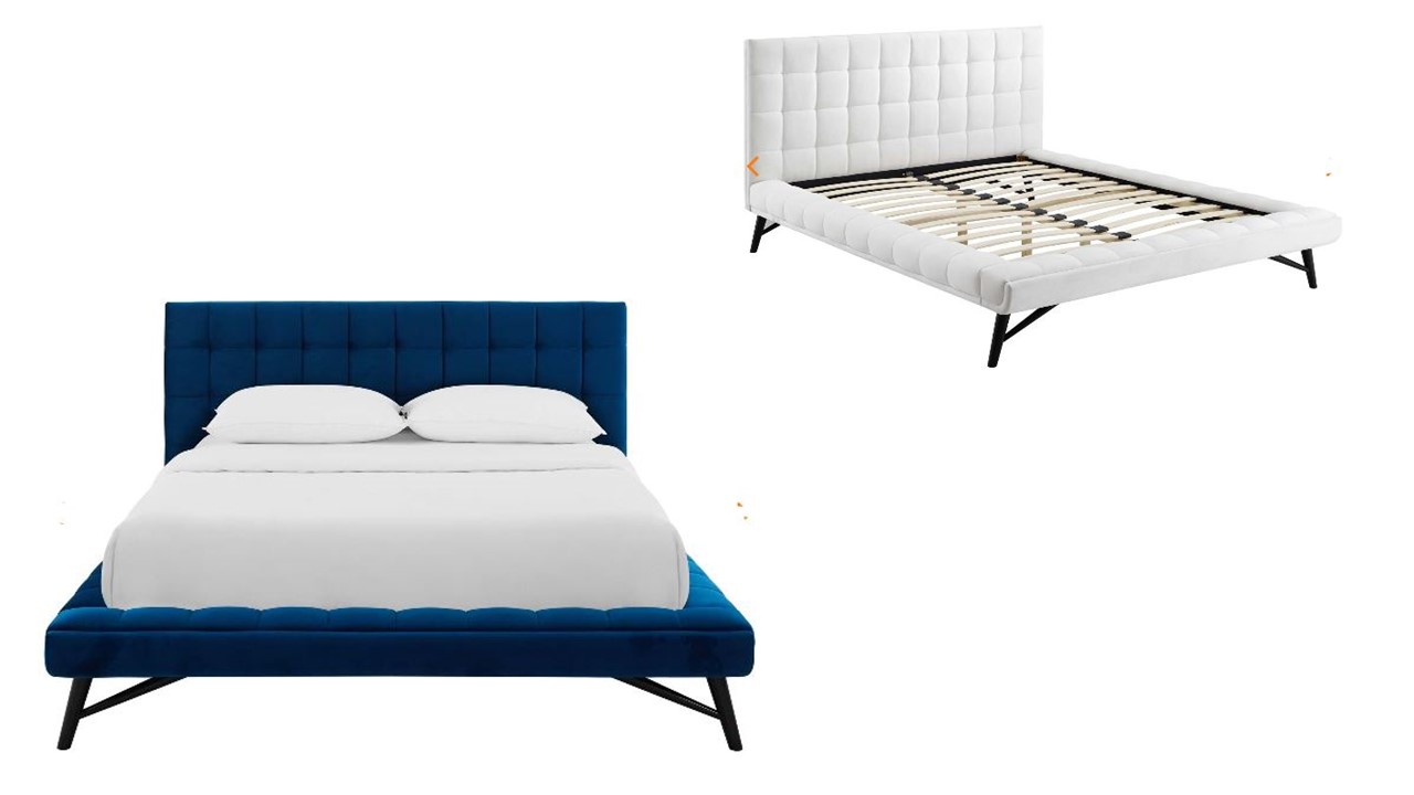 The Julia Queen Platform Bed brings soft, elegant style to your bedroom with its tufted upholstered design and clean, modern lines. The detailed headboard adds texture and visual interest, making it a standout piece while maintaining a refined, modern look.