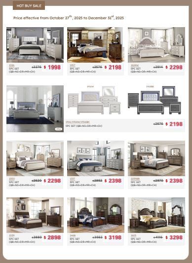 Explore our luxury bedroom collections featured in this exclusive holiday sale. These top-tier sets include elegant wood finishes, upholstered headboards, ornate designs, and complete matching case pieces. Perfect for homeowners seeking high-end style and long-lasting craftsmanship, these premium bedroom sets deliver exceptional beauty at impressive seasonal savings.