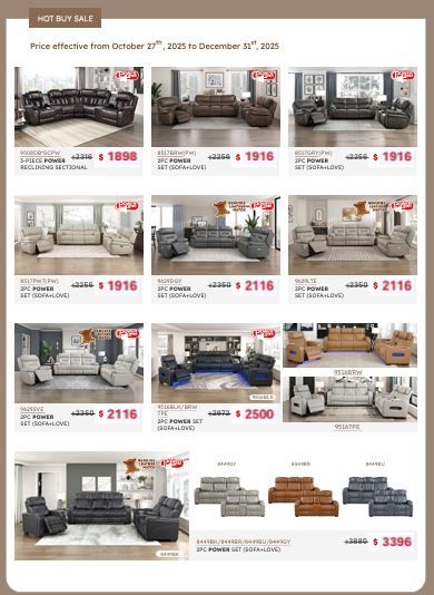 Explore luxury and convenience with our power reclining sofa and loveseat sets, crafted in premium leather-match and top-grain leather options. These sets feature smooth electric reclining, deep cushioning, and modern styling for ultimate comfort. Holiday price makes these power reclining sets an incredible value for upgrading your home.