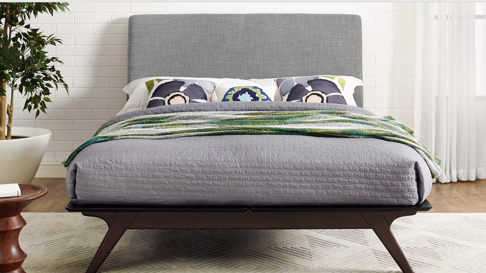 The Tracy Queen Platform Bed brings a clean, modern look to the bedroom with a soft upholstered feel and an inviting design. Its streamlined profile adds comfort and style while fitting beautifully into contemporary spaces. A great choice for homes in Northern Virginia, Washington DC, and Maryland looking for a stylish platform bed with a polished, modern finish.
